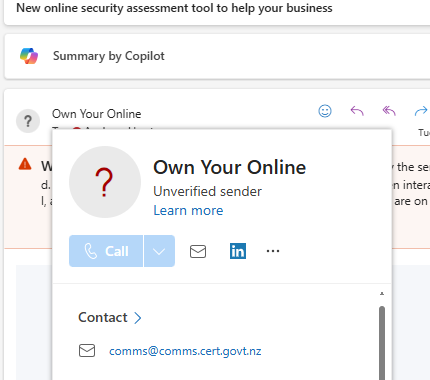 That was my recent experience with an email from Cert NZ. Despite the initial warning, the email turned out to be legitimate and introduced an excellent simple self-assessment tool for businesses