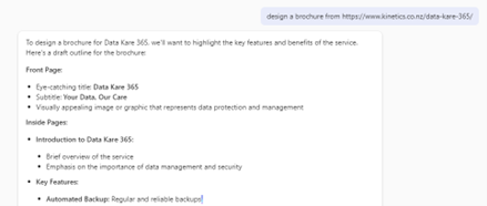 “What should be on my radar from emails and chats this week?” or “Design a brochure from …”