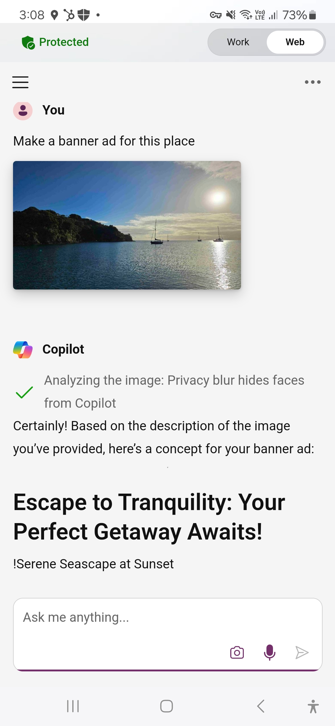 Firstly, make sure you have the Copilot app on your phone. You can download it here. It will create imagery, write content and even work with photos from your camera.